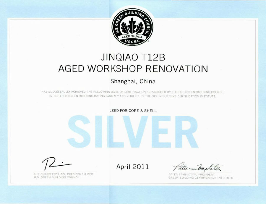 金桥T12B厂房获美国绿色建筑LEED SILVER奖
